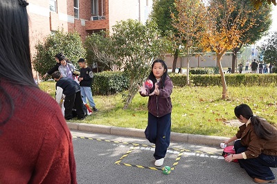 隨后,活動(dòng)進(jìn)入輕松有趣的親子游戲環(huán)節(jié)。在公司大樓門(mén)口,《套圈》《平衡小能手》《文明飛行棋》《信任盲行》四個(gè)游戲區(qū)域同步開(kāi)展。大人和孩子齊上陣,在妙趣橫生的互動(dòng)中協(xié)同合作,加油聲、歡呼聲、笑語(yǔ)聲此起彼伏,現(xiàn)場(chǎng)化身為一片歡樂(lè)的海洋。《套圈》攤位人氣爆棚,彩圈紛飛,喝彩不斷,成為活動(dòng)現(xiàn)場(chǎng)最火爆的風(fēng)景線;《平衡小能手》區(qū)域,孩子們金雞獨(dú)立,目光緊鎖弧線,在晃動(dòng)中精準(zhǔn)捕捉來(lái)球,贏得滿場(chǎng)喝彩;巨型《文明飛行棋》賽場(chǎng)趣味盎然,孩子們擲出骰子,因文明行為前進(jìn),因不良習(xí)慣后退,在游戲中生動(dòng)實(shí)踐了行為規(guī)范;《信任盲行》考驗(yàn)極致信任,蒙眼者無(wú)畏前行,指引者口令清晰,在障礙中攜手共進(jìn),完美抵達(dá)。